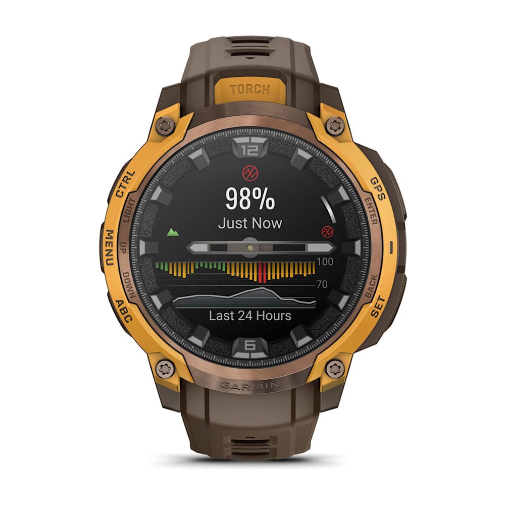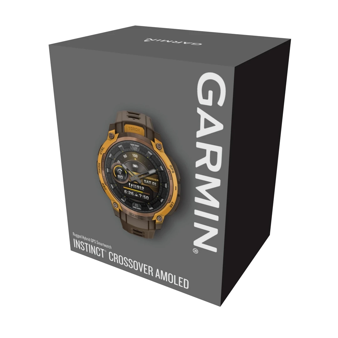 Con una colorida pantalla de 1.2″, manecillas analógicas y una linterna incorporada, el Instinct Crossover AMOLED es el smartwatch con GPS resistente preparado para todo.