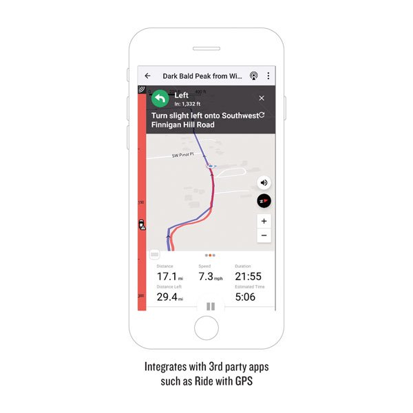 Al vincularse con tu smartphone compatible, el radar Varia se integra con tus aplicaciones favoritas, como Ride with GPS, que superpone los mapas con alertas del radar de visión trasera.