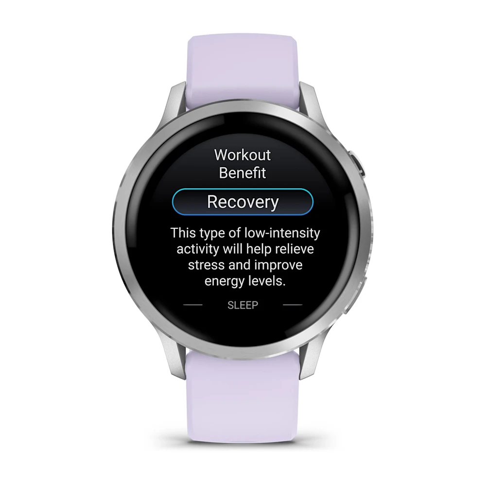 Mejora hacia un estilo de vida más saludable con amplias funciones de control de la salud, como monitor de energía Body Battery™, estrés, pulsioximetría1 y seguimiento de la salud femenina, incluidas las estimaciones de las ovulaciones anteriores2, y mucho más3.